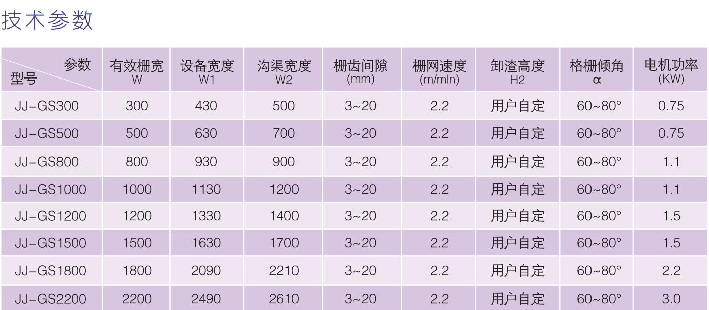 用来拦截与分离水中悬浮物,当悬浮物经过栅齿时被送至机架上方,然后由卸渣装置将其从排渣口排出。该机用于较宽而深的格栅沟渠中的效果更佳,结构简单并设有过载保护装置。